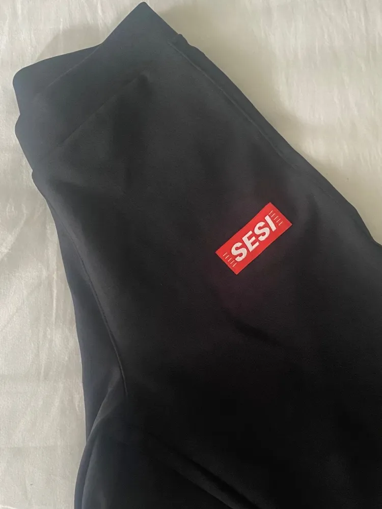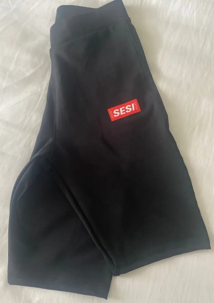 Bermuda feminina preta modelo ciclista em suplex com  logo SESI.