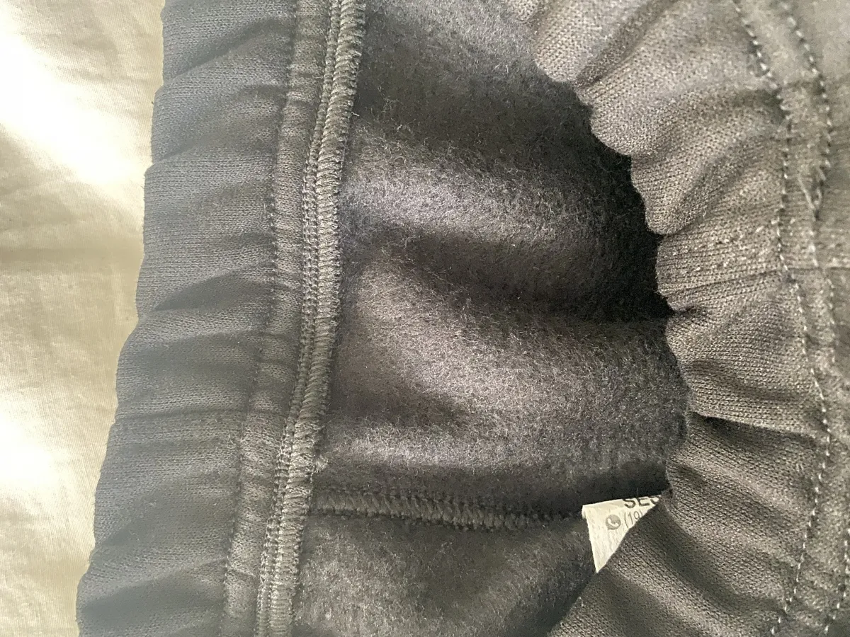 Calça preta de helanca felpada com bolsos laterais embutidos
