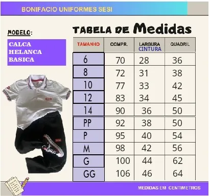 Calça preta, confeccionada em Helanca FELPADA, com bolsos embutidos nas laterais e com logo do SESI lateral.